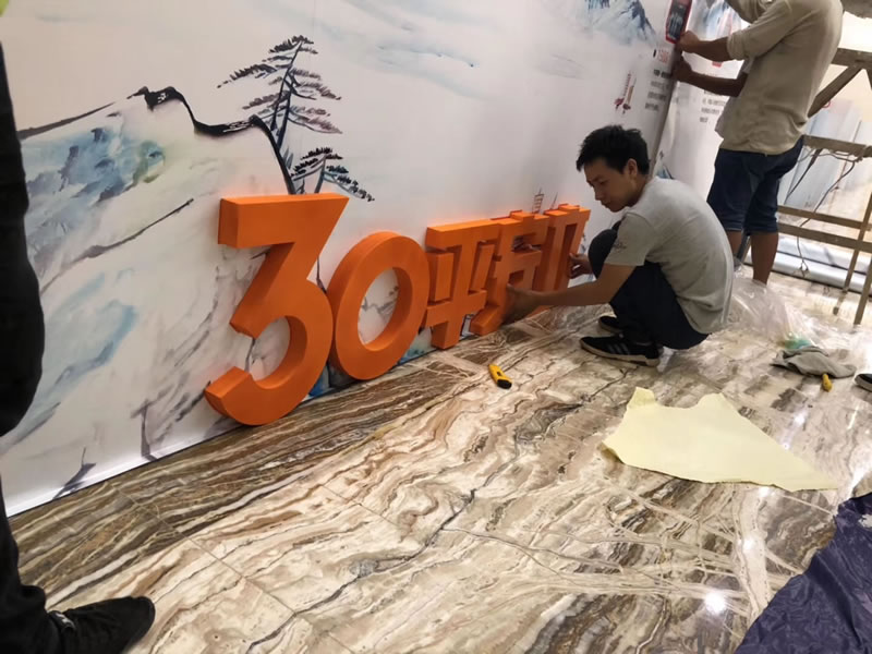 包含喷绘、写真、舞台造型、发光字、立体字、超大背景墙,卷轴,组合效果惊人,客户满意度非常高,所有的活动物料在活动结束后都留陈。