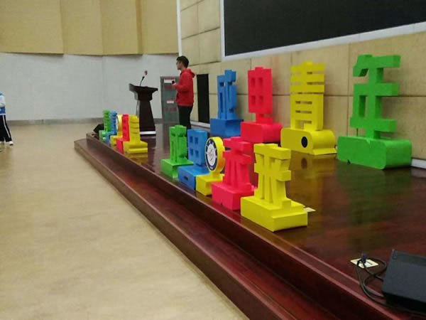 成电青年或活动,超大舞台立体字,造型坚固,喷漆均匀,效果喜人…